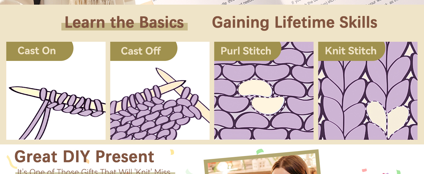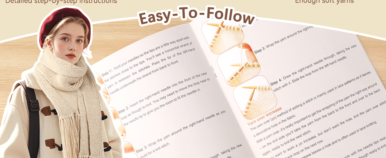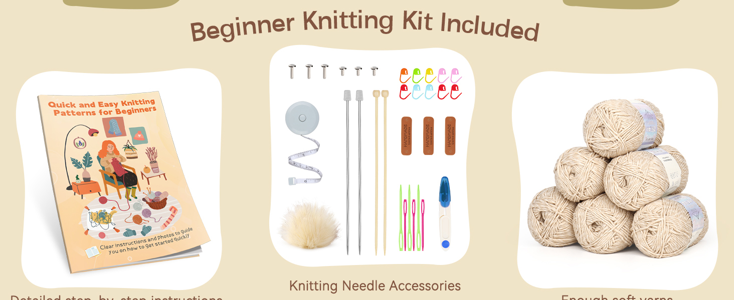 Complete knitting starter kit is designed for true beginners. It includes a **detailed photo-illustrated guidebook** that walks you through every step—from the first slip knot to finishing techniques—so you can learn confidently even with zero experience.