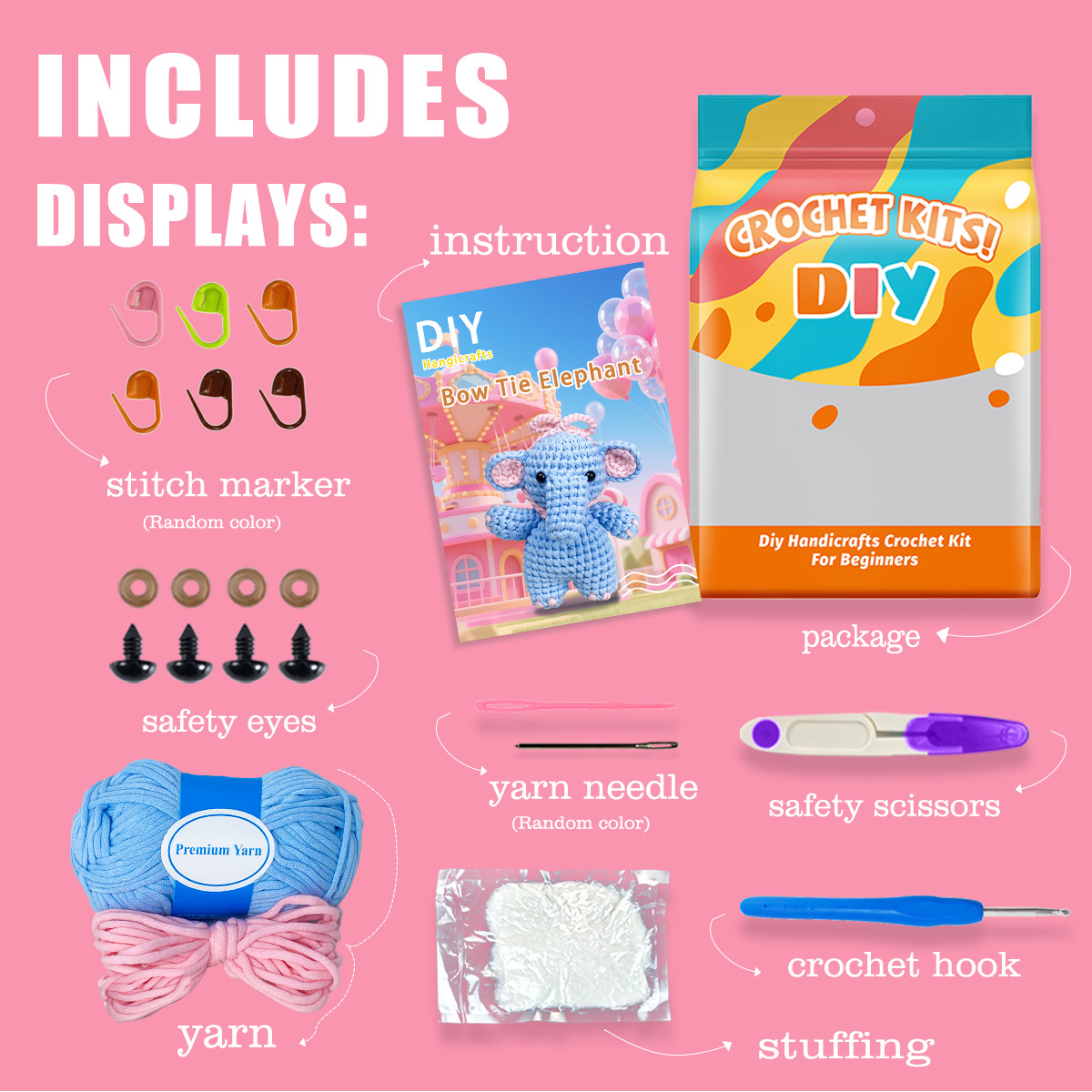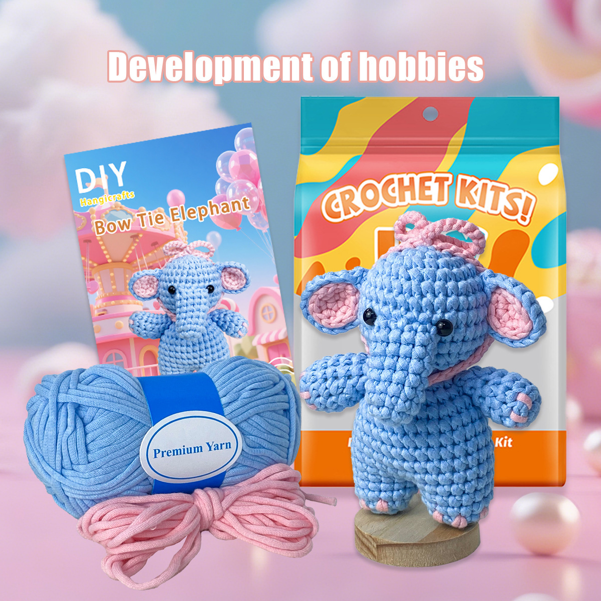 Beginner’s Crochet Kit – Butterfly Knot, Blue Elephant DIY Crochet Set – Perfect for Beginners