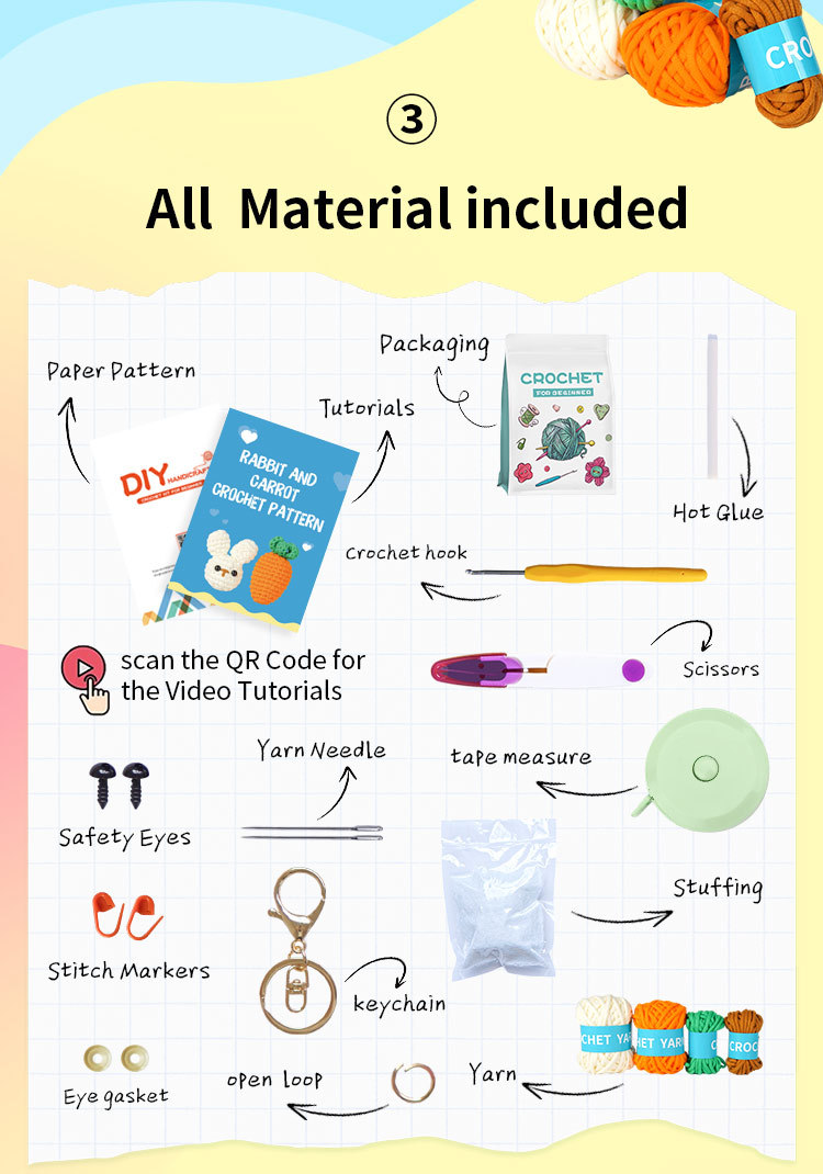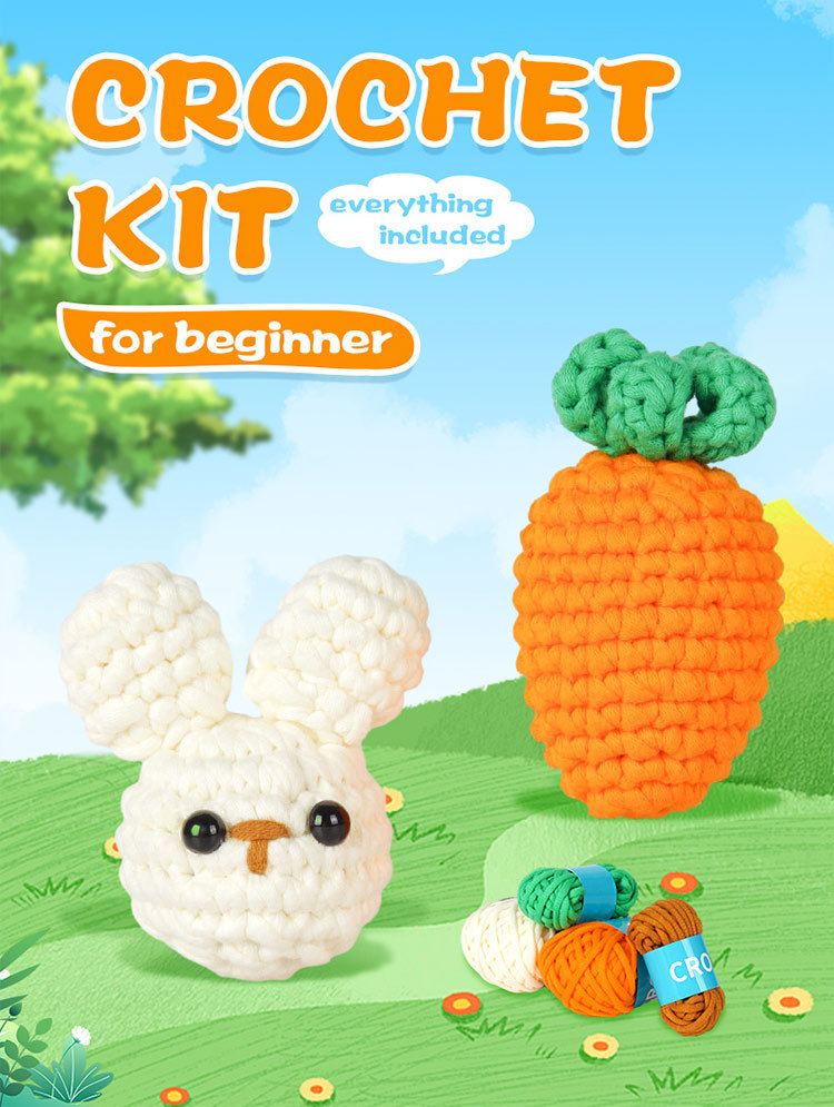 Best-selling crochet material package for DIY handmade knitting of rabbit and carrot figurines as decorative items