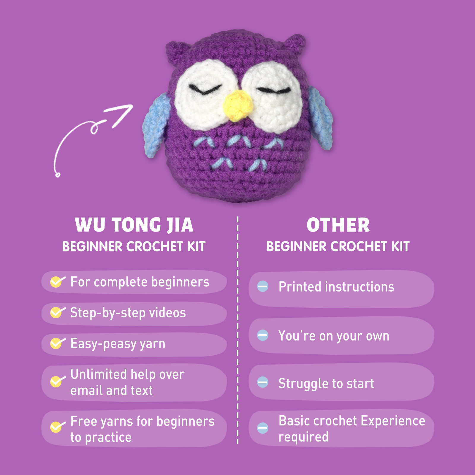 Crochet kit – A material package for making a doll, an owl, and a combined toy and hat. Ideal for DIY hand weaving.
