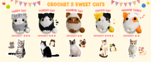This all-in-one beginner crochet kit contains every component required to craft an adorable, colorful cat: detailed illustrated instructions, step-by-step video tutorials, 9 vibrant yarn colors, premium stuffing, safety eyes, an ergonomic crochet hook, yarn needle, and stitch markers. Start creating immediately – no extra purchases needed!