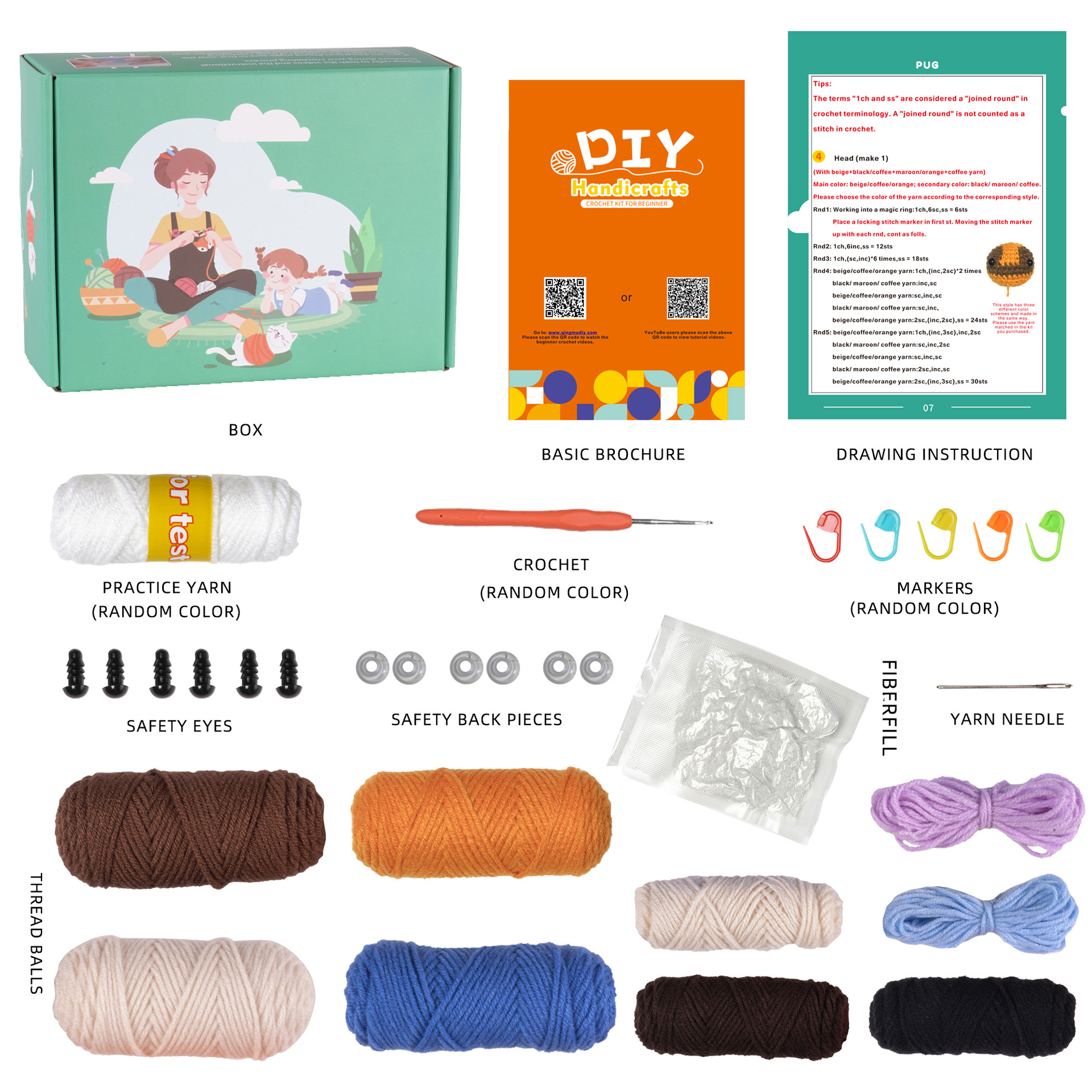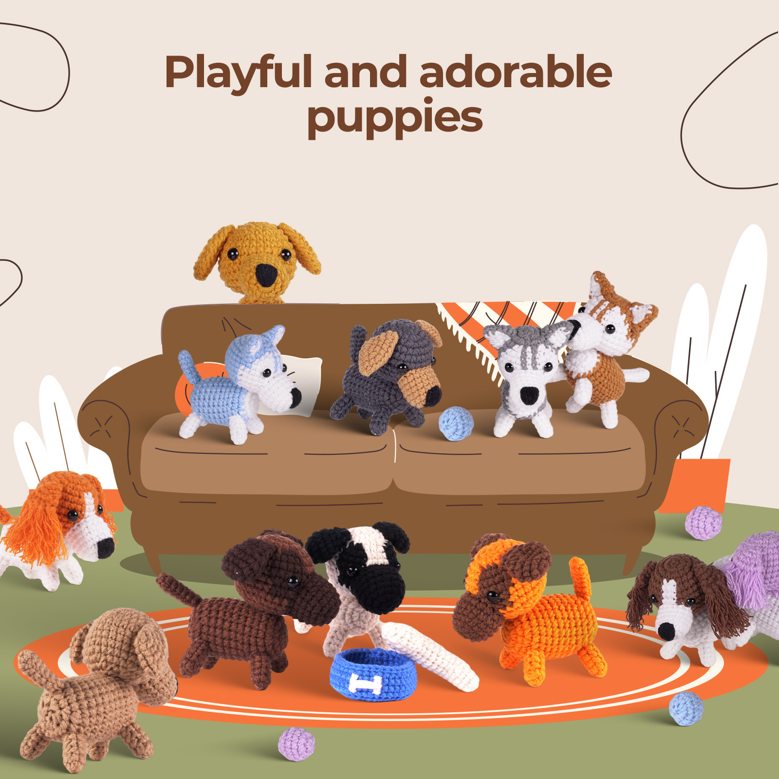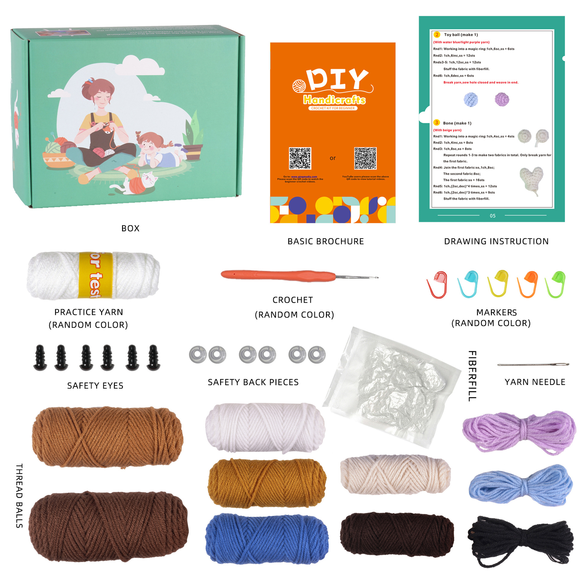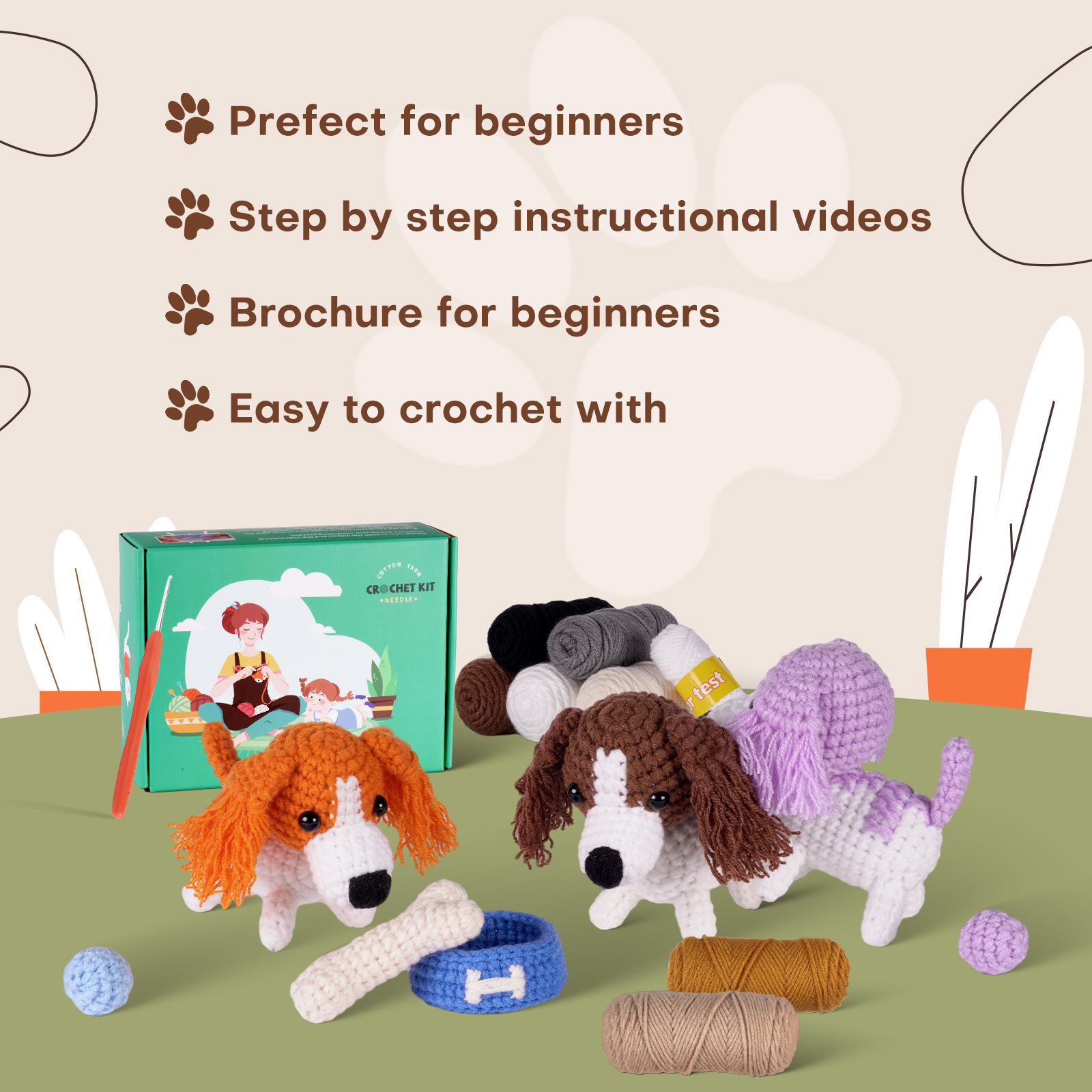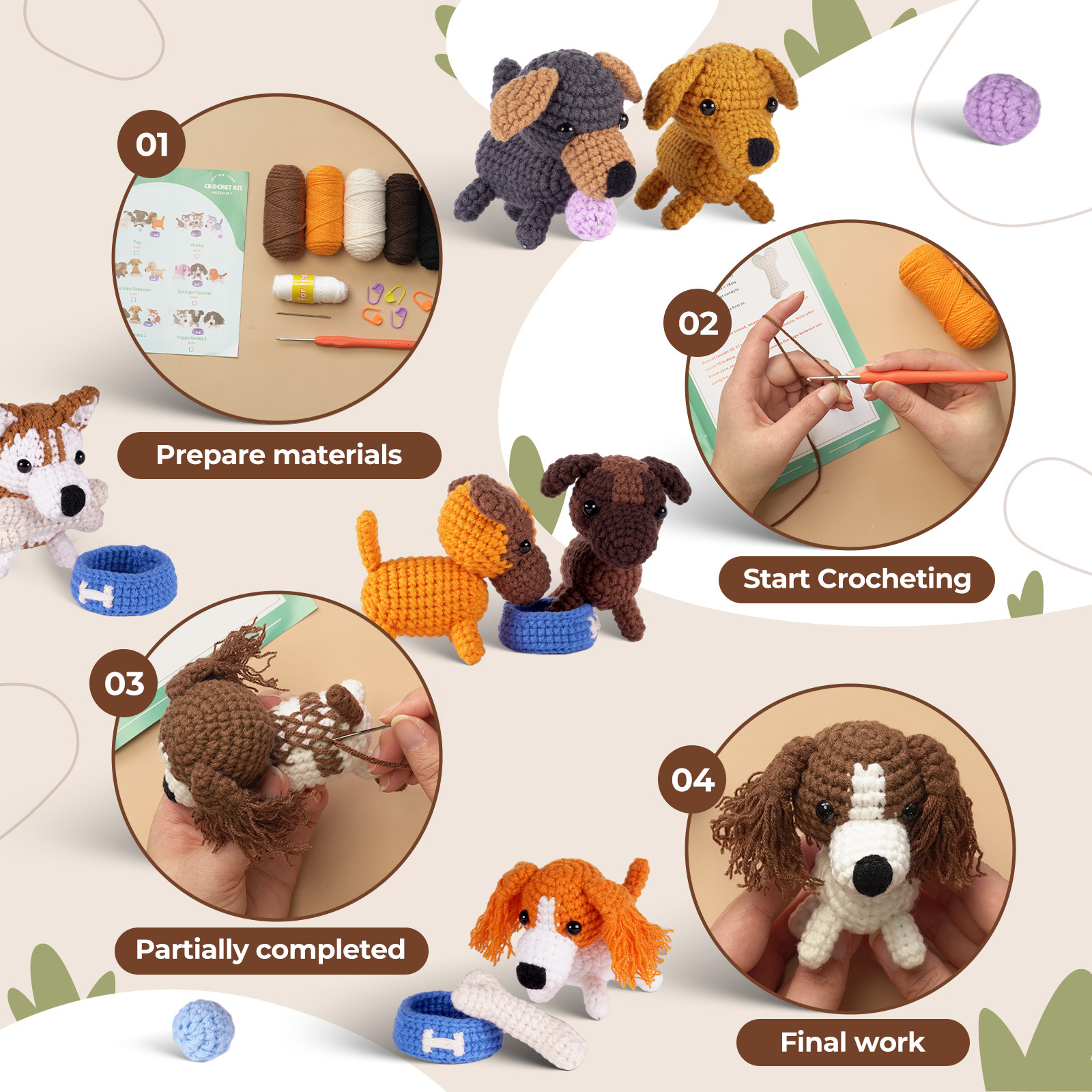 Crochet kit, material pack, doll, dog set, handmade DIY knitting