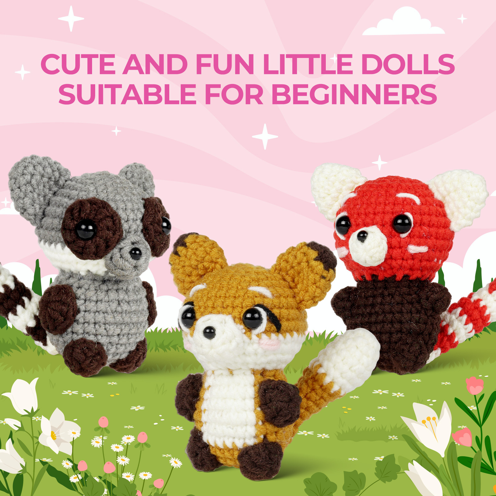 Crochet kit – Material pack – Three small dolls – Handmade DIY knitting