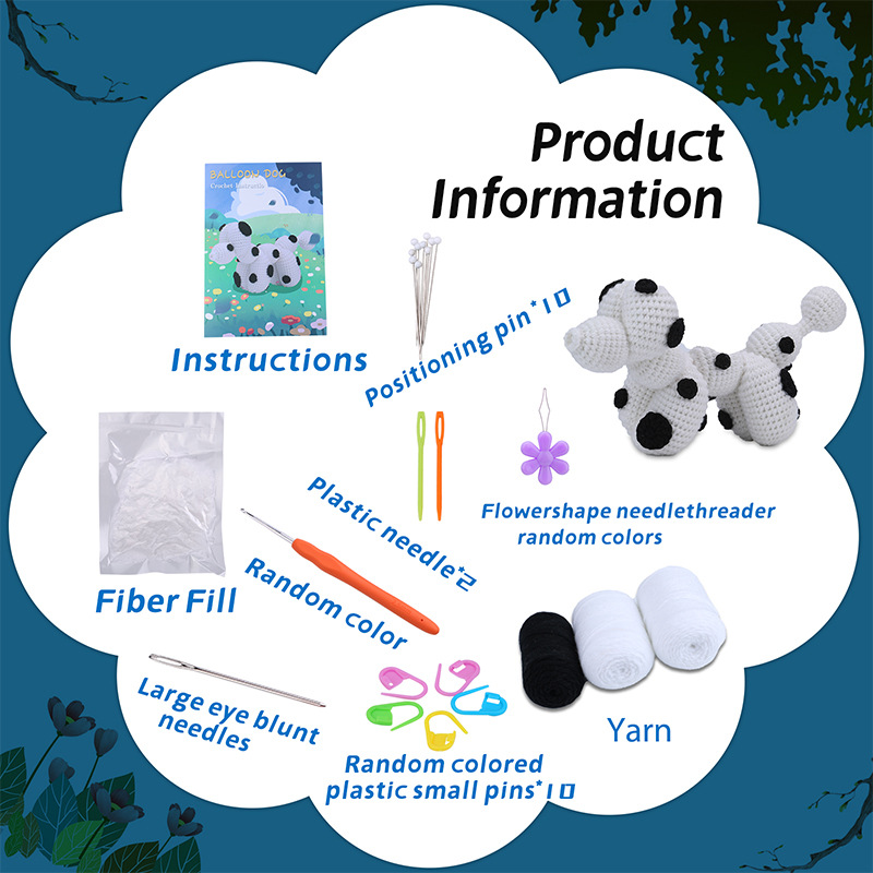 Crochet material pack – Balloon dog wool knitting doll DIY animal children’s toy display piece