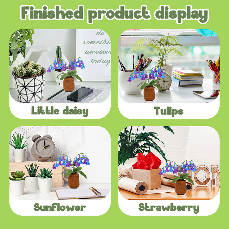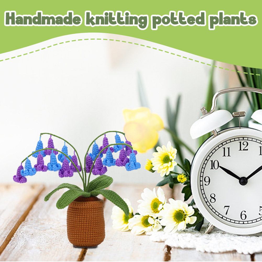 Crochet material pack – Bluebell flower pot plant decoration DIY handcraft for living room and bedroom decorative items as gifts