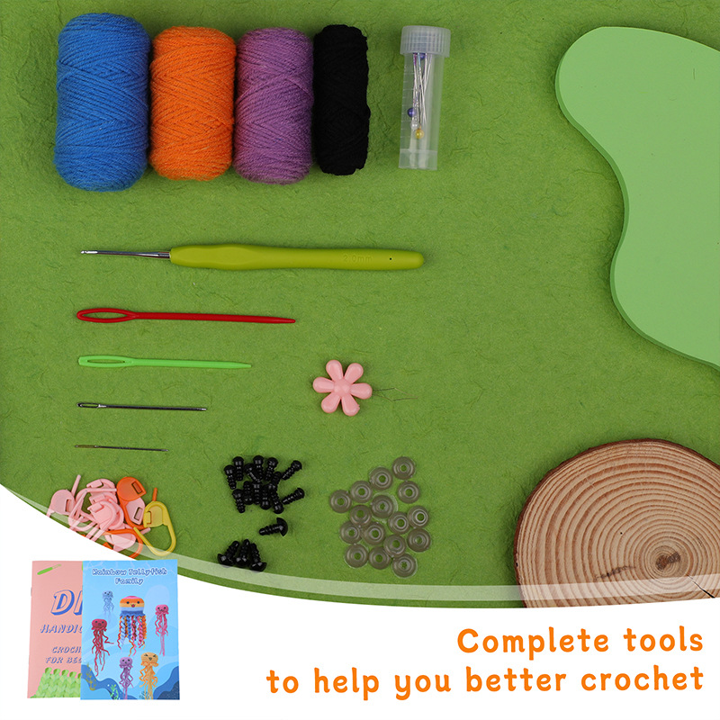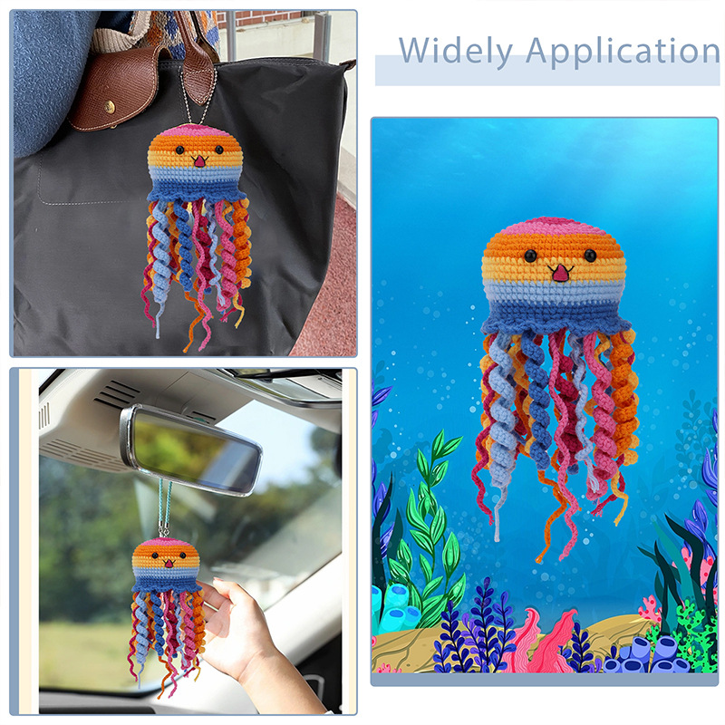 Crochet material pack – colorful jellyfish family children’s room cute hanging ornament handmade wool product