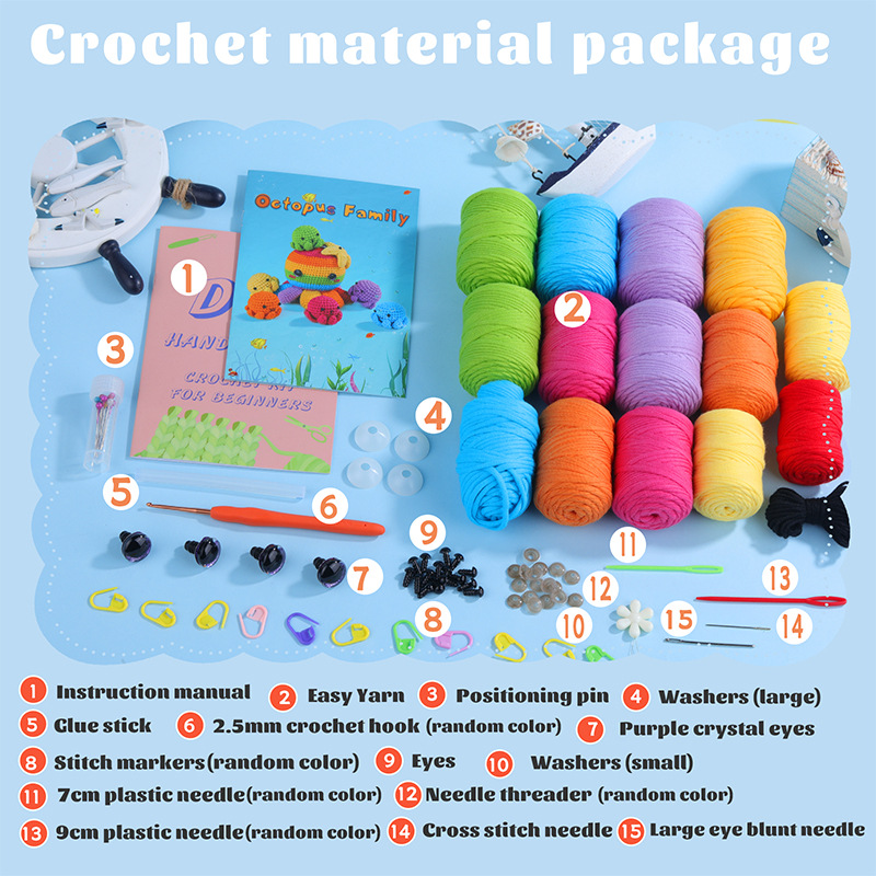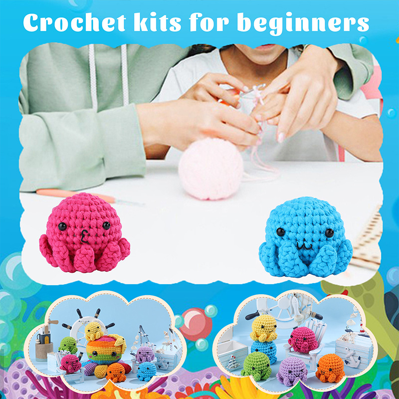 Crochet material pack – Colorful octopus family doll ornaments – Children’s festival gifts – Handmade ornaments – Decoration items