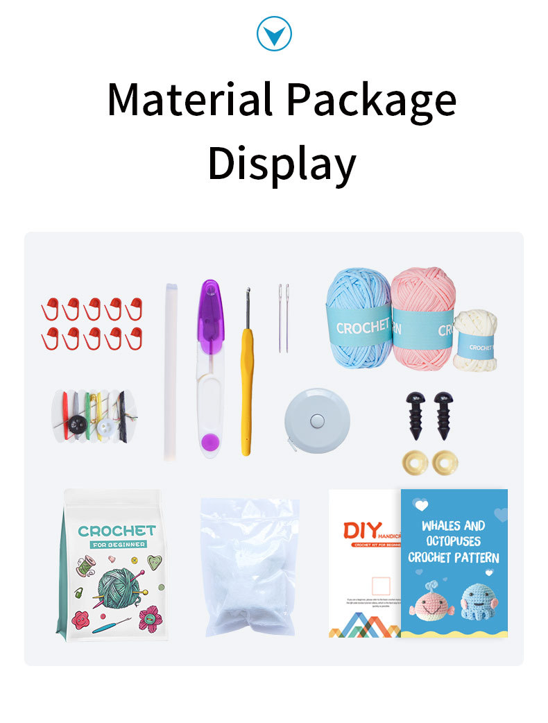 Crochet material pack for DIY handmade knitting of cute doll ornaments and wool balls knitting material pack