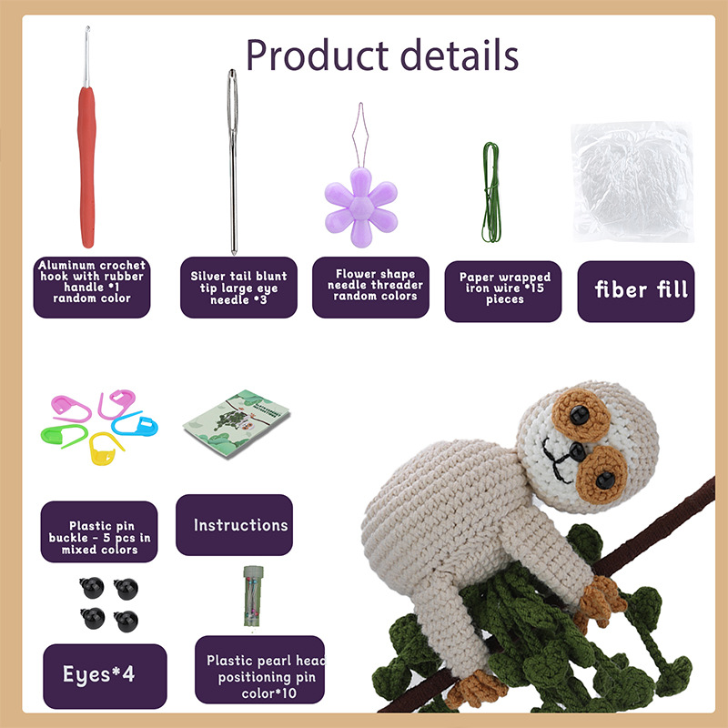 Crochet material pack for hand-knitting animal tree sloth plant pot decoration items