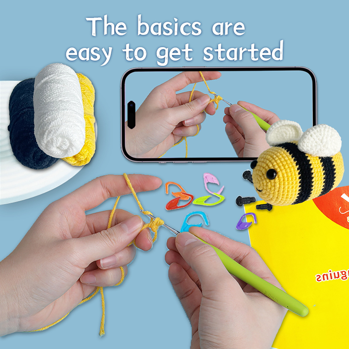 Crochet wool bee craft material pack