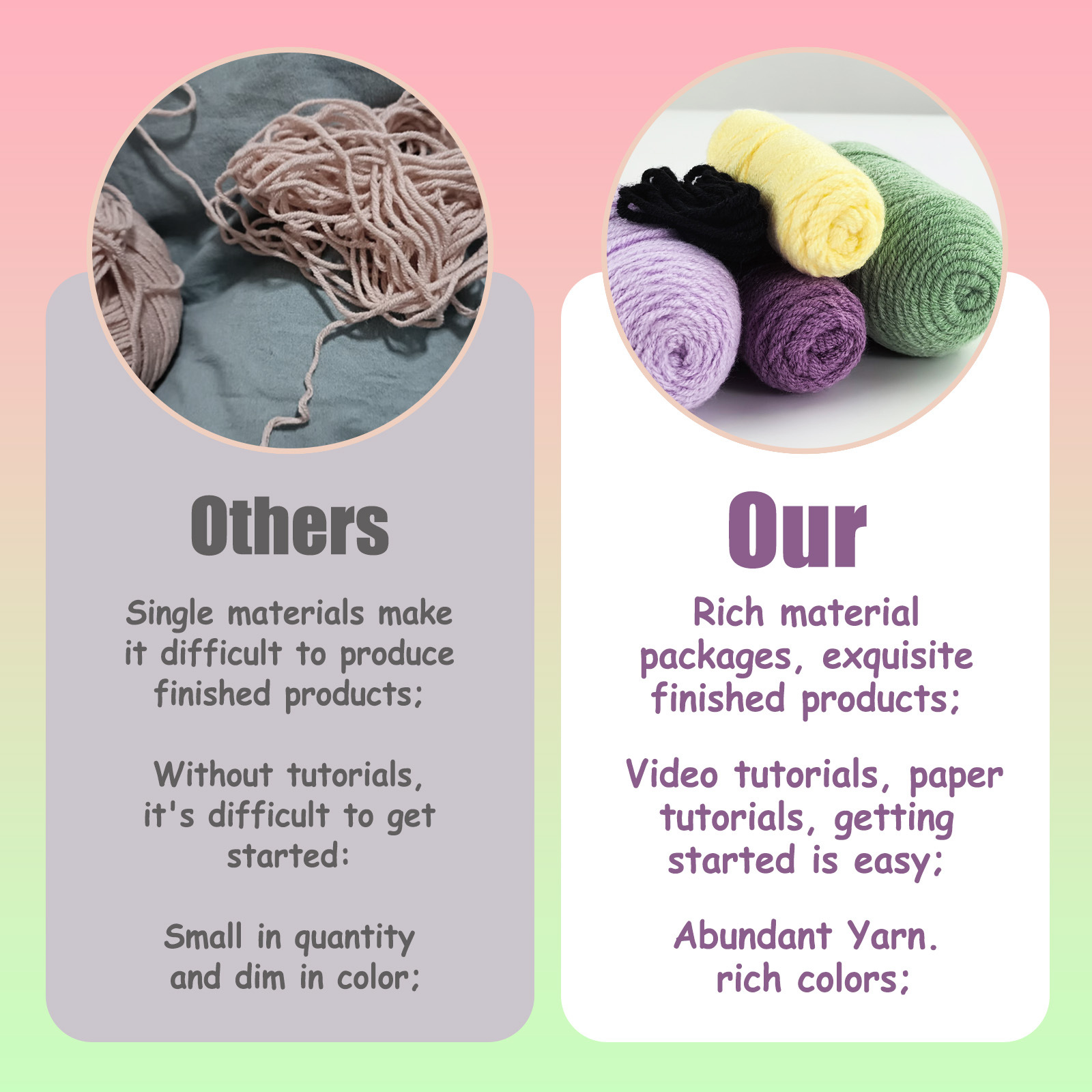 We include 40% more yarn in every color so you can practice freely and fix mistakes without worry. Our special beginner yarn is smooth, resistant to splitting, and helps you achieve neat, professional-looking stitches with ease.