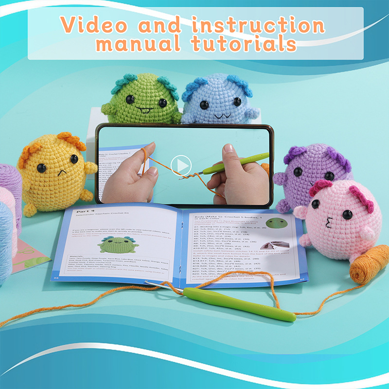 DIY crochet material pack – Salamander keychain, cute little pendant, colorful doll, small gift, for giving as a present, new style, hot sale