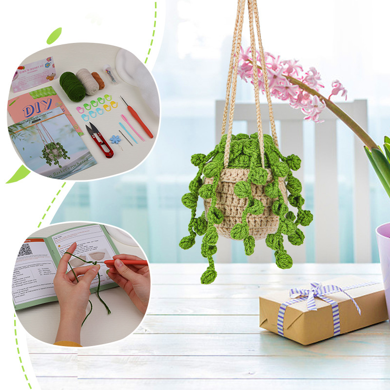 Hand-knitted Autumn Fragrance Green Bean Bean Hanging Basket Decorative Kit Knitting Needle Materials Pack