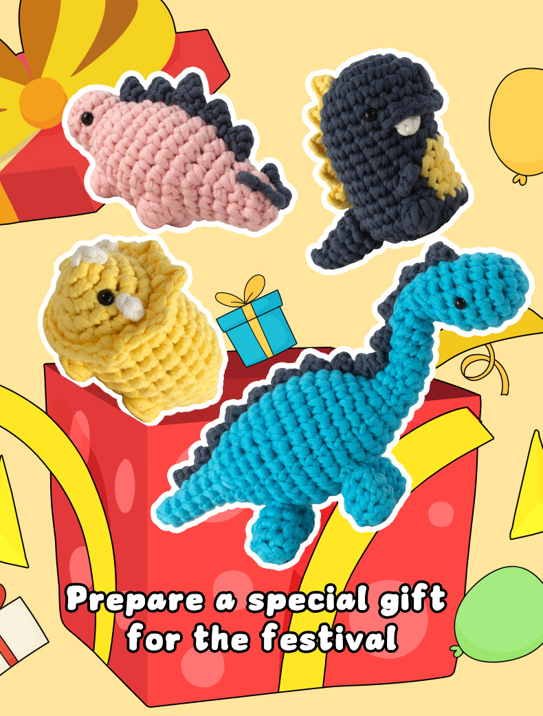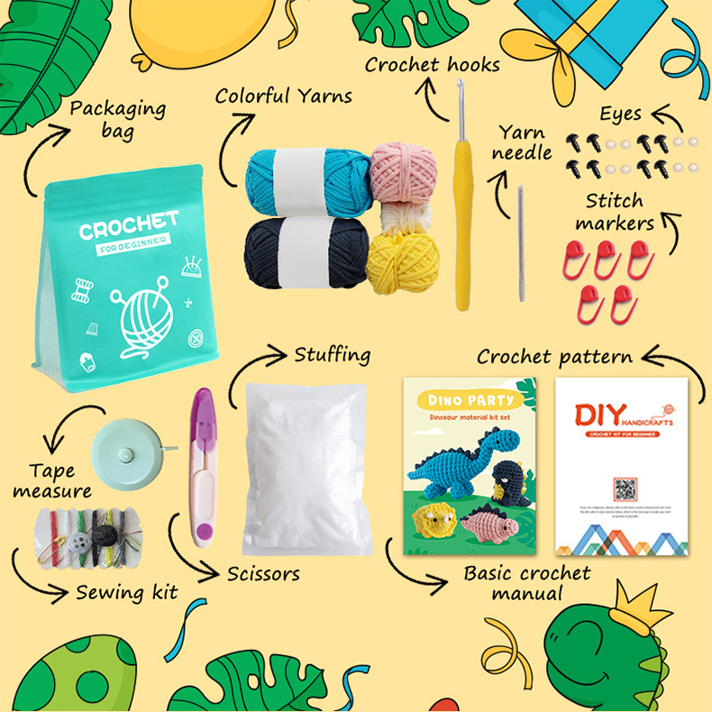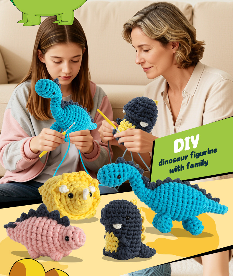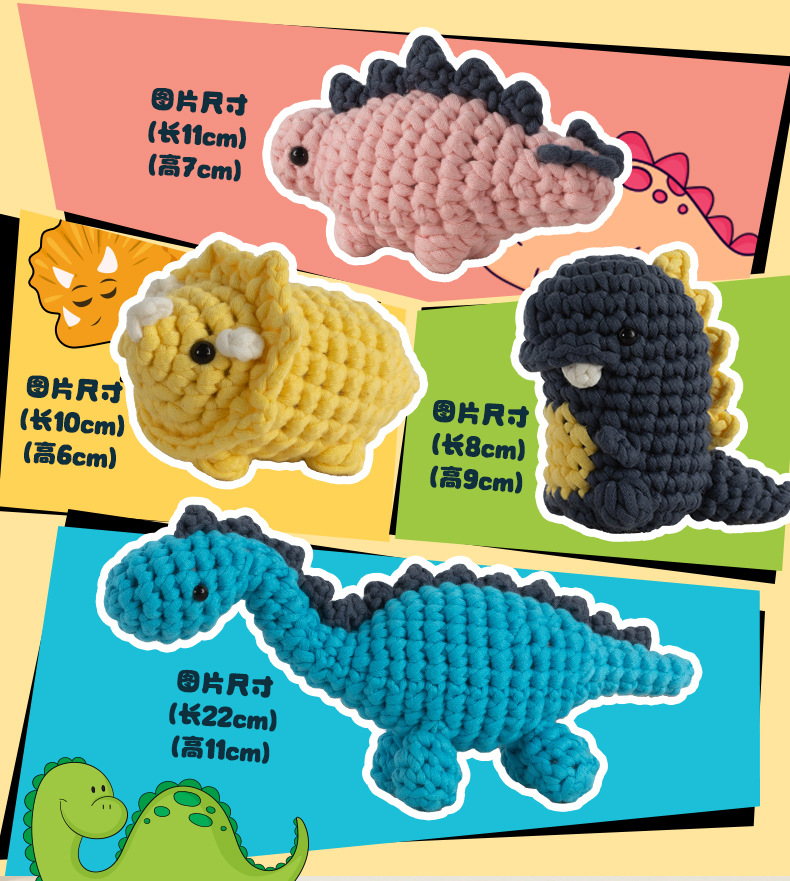Handmade DIY Dinosaur Doll Crochet Material Pack – Pure Cotton Doll Set