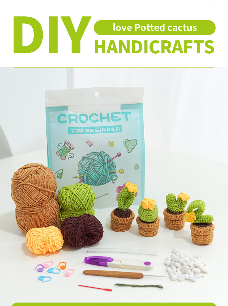 Handmade knitting DIY material package for green plant pots and wool knitting crochet ornaments