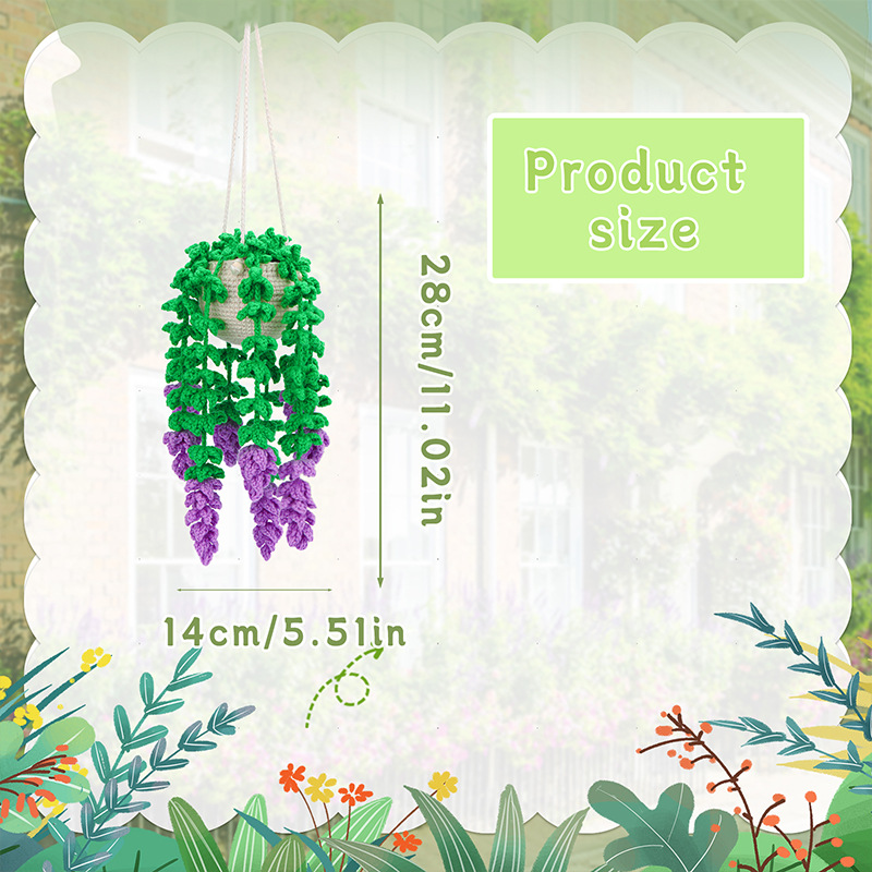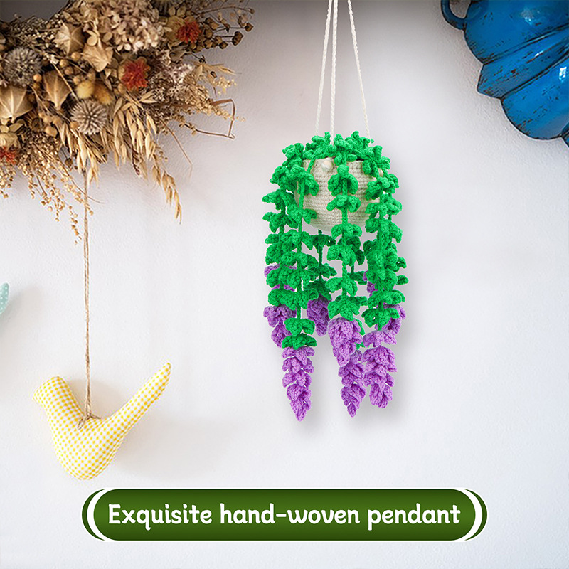Hot-selling new product – Purple flower long-style green plant hanging basket hanger hook knitting material package DIY handmade milk cotton wool ball