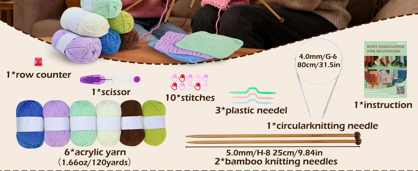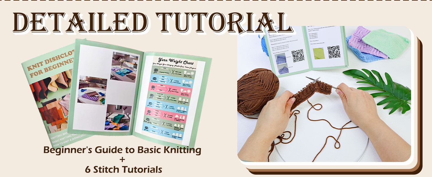 Learn to Knit Starter Kit for Beginners โ€“ Make 6 Pattern Dishcloths with Step-by-Step Guide | Complete Set with Yarn, Needles & Accessories Included