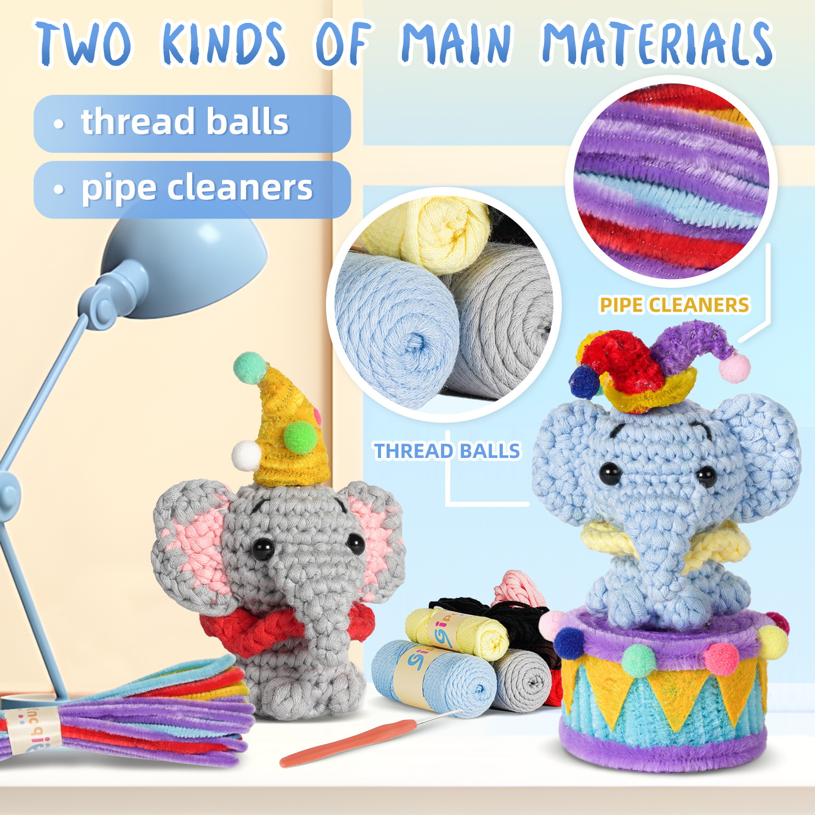 New crochet kit material pack – doll mini small elephant – without fork – stuffed cotton – handcrafted – DIY – knitting