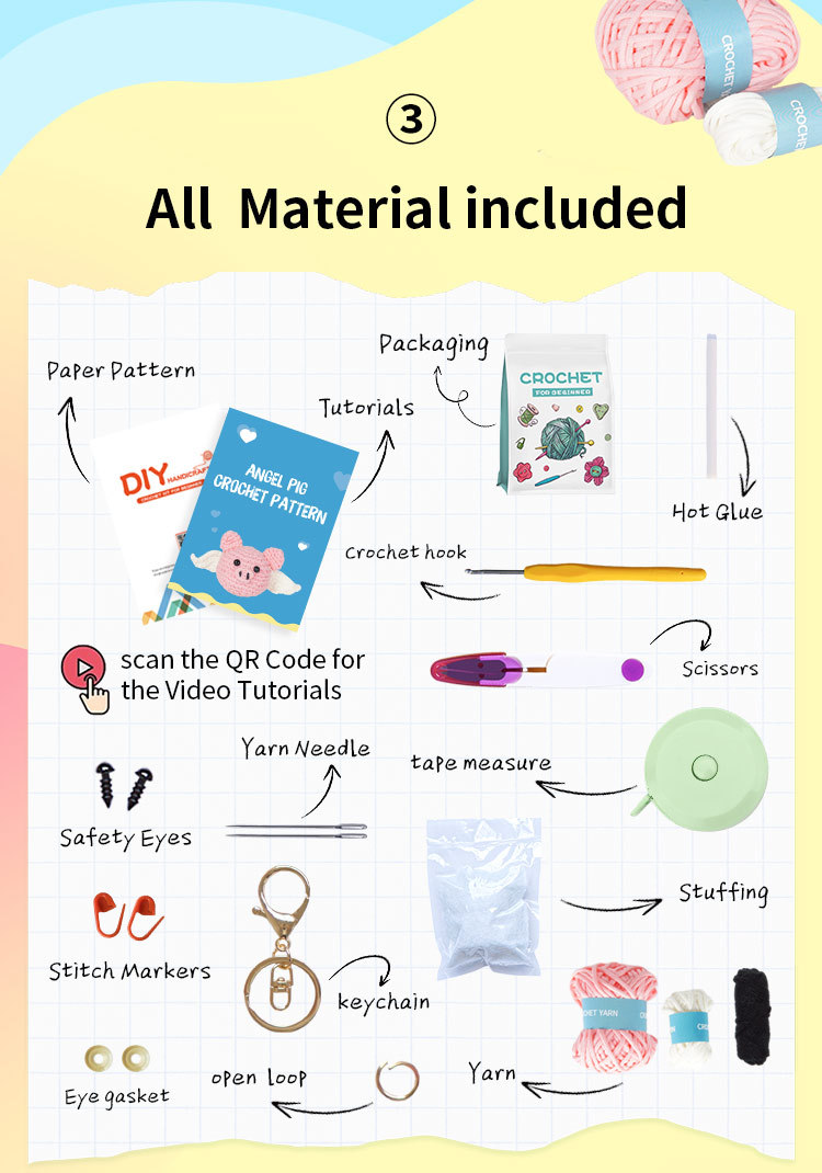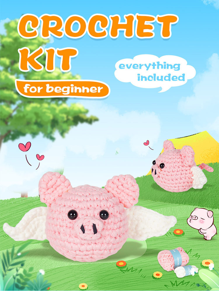 New crochet material pack for DIY handcrafted wool ball pig-shaped doll keychain