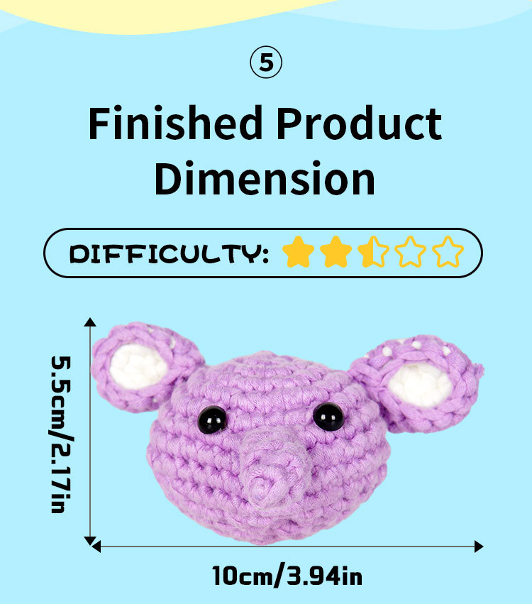 New crochet material pack for DIY handmade knitting of elephant-shaped plush keychains with wool