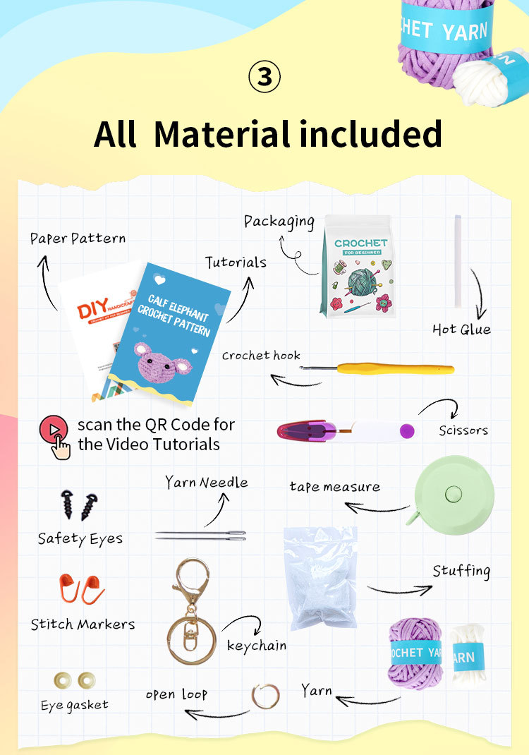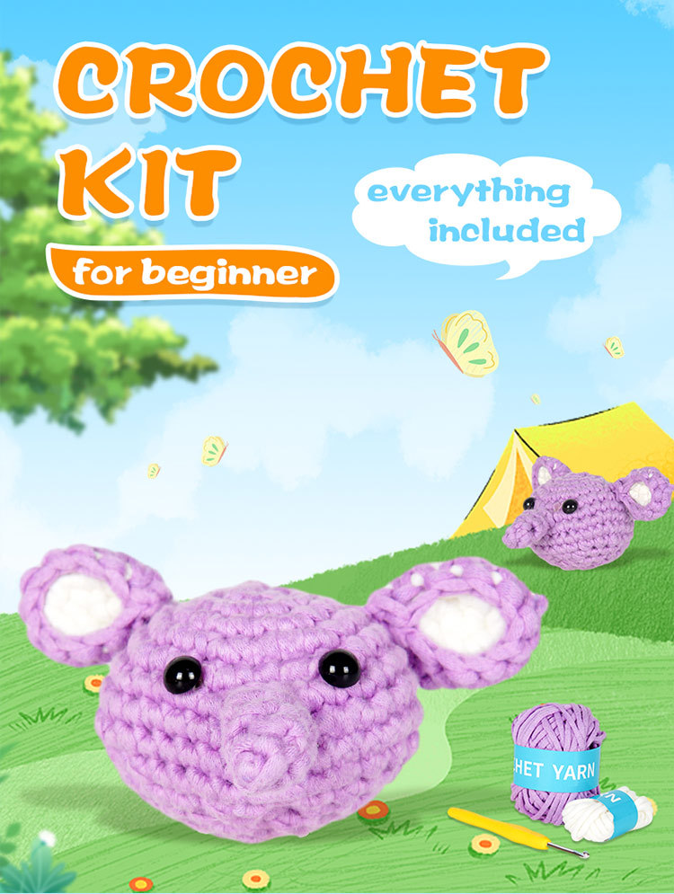 New crochet material pack for DIY handmade knitting of elephant-shaped plush keychains with wool