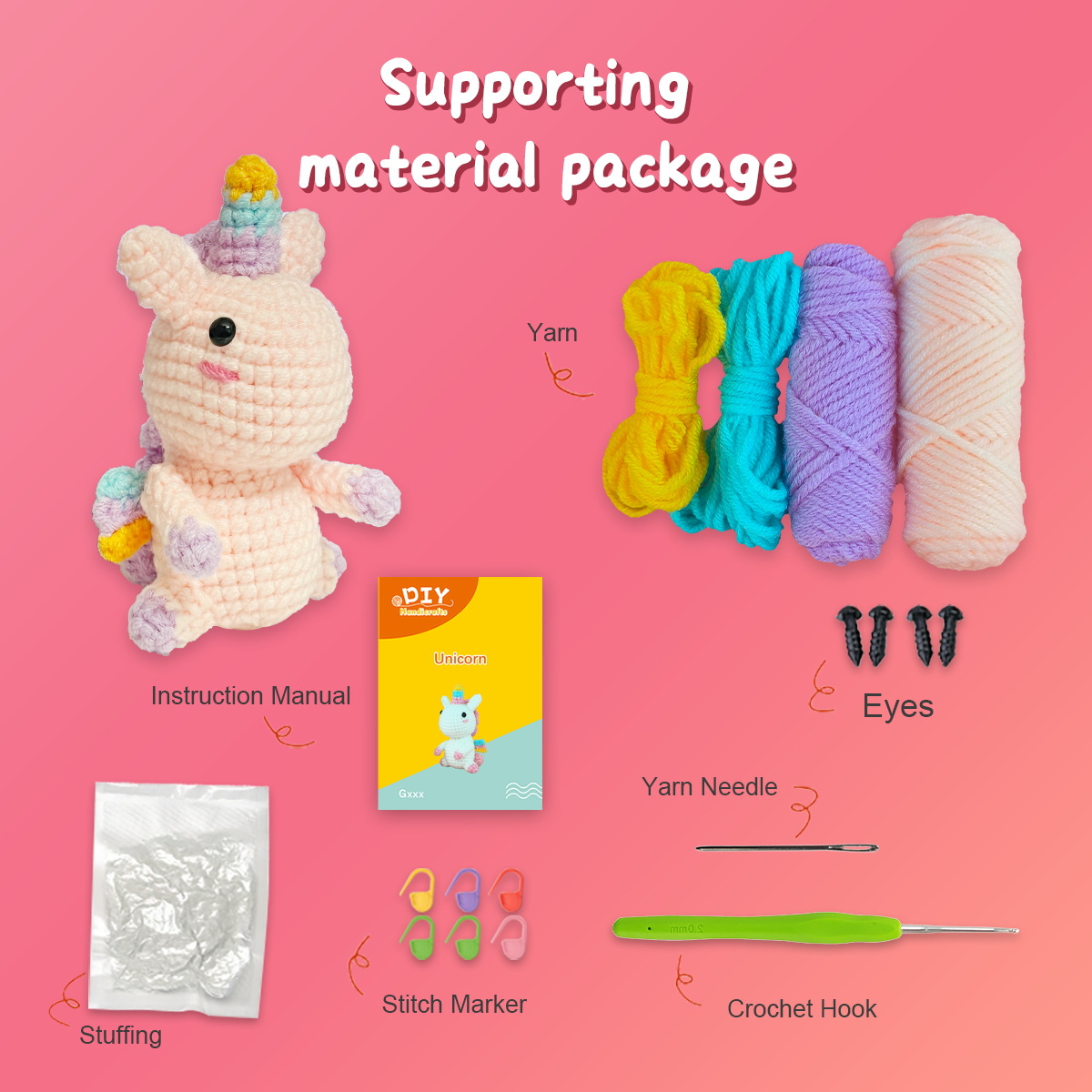 Unicorn Crochet Kit Materials Pack – Amazon Bestseller – Handmade Knitting DIY